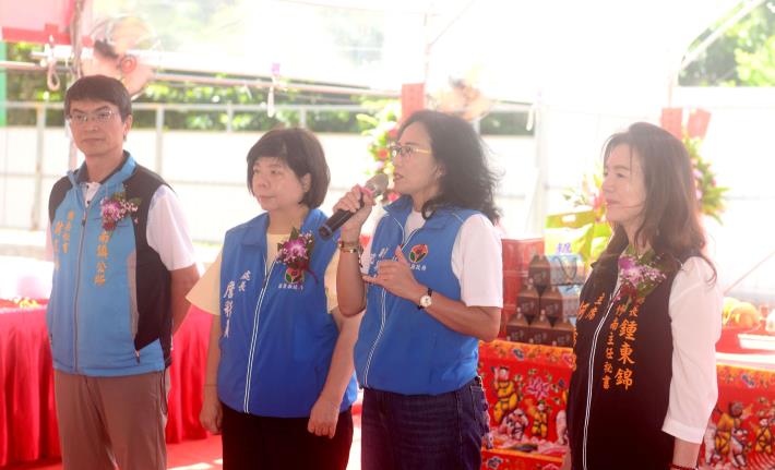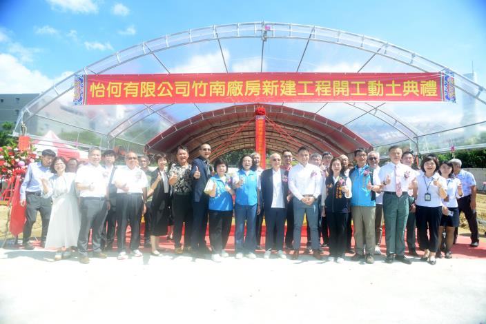 副縣長邱俐俐、工商發展處長詹彩蘋、竹南鎮公所機要秘書謝文福、代表會主席何秀綿上午出席怡何有限公司竹南新廠動土典禮,怡何公司董事長何當敏也率領公司員工一起焚香祈求工程順利。