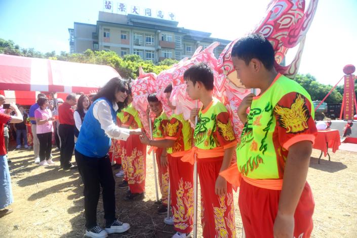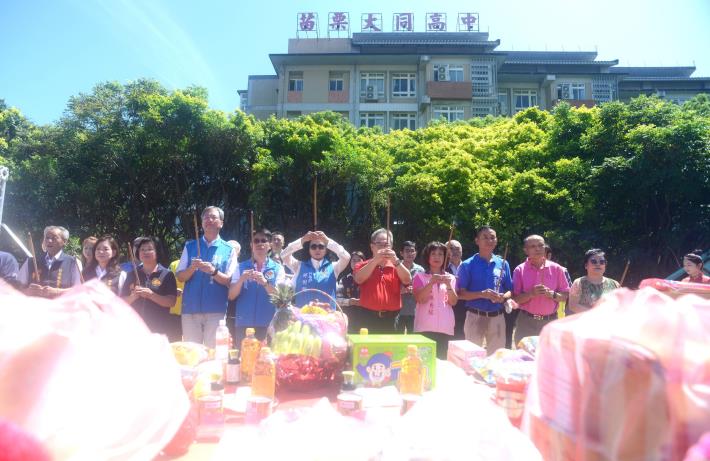副縣長邱俐俐、教育處副處長彭德俊、立委陳超明顧問何文德、地區議員、代表上午共同主持動土典禮,並焚香祝禱工程進展順利。大同高中校長何高志、家長會長林樹文也率學校師生參與,見證學校新的里程碑,會場還特別邀請苗栗市建功國小舞龍隊表演熱鬧慶祝。