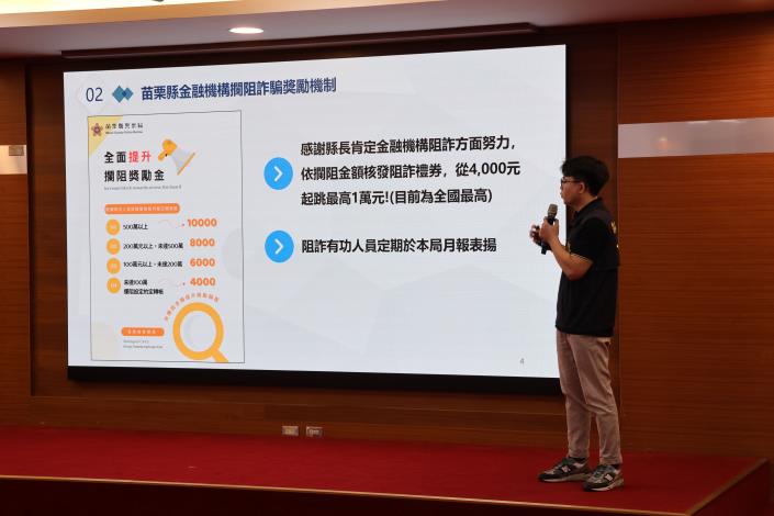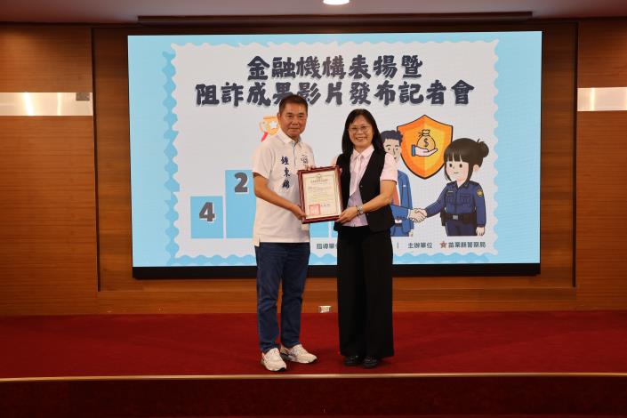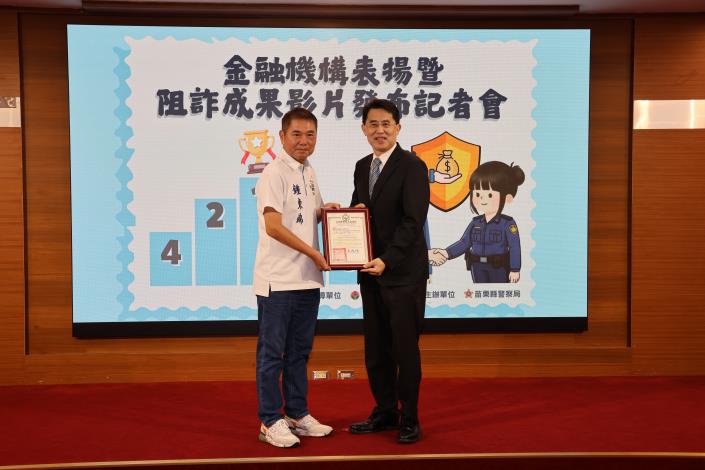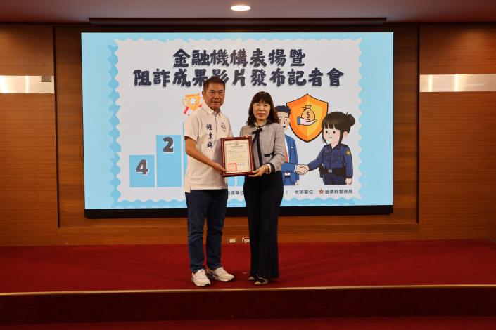 警察局說明,去年起縣長鍾東錦為激勵金融機構行員聯防阻詐,加碼提高1倍之阻詐獎勵,發放4000到1萬元禮券,今年度至8月底警銀合作共成功攔阻253件詐騙案件,攔阻金額高達2億4166萬餘元,為全國非六都第二名,並於114年第3次打詐專案榮獲全國乙組第1名,顯著成效獲肯定。