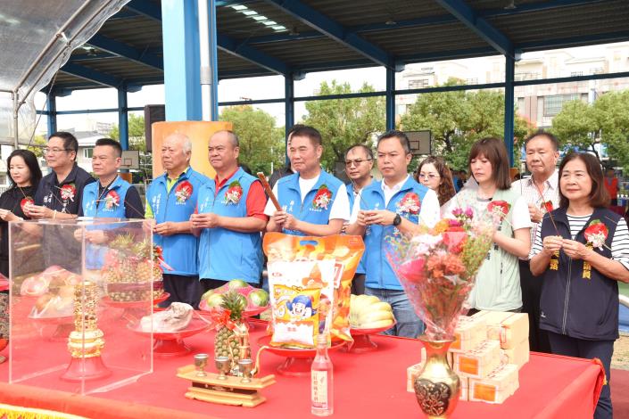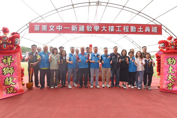 新建工程今日上午舉行動土儀式,先由祥獅獻瑞帶來好彩頭並為會場增添熱鬧與喜氣,縣長鍾東錦隨後率教育、交通工務處長及苗栗市長余文忠等人,以及立委、縣議員、代表、里長及建築師、營造單位代表,一起焚香祝禱後動土開工,苗栗縣的教育大業再邁向新里程碑。
