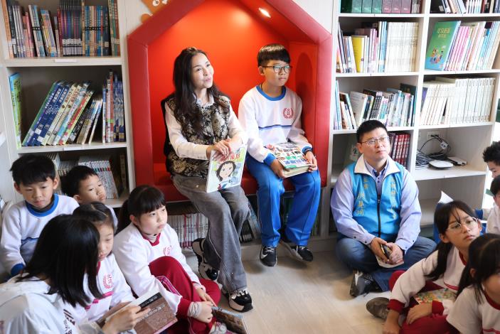 文苑國小創校逾 70 年,原有圖書室設備老舊、動線傳統,縣府補助280萬元協助學校重新打造全齡友善的閱讀空間。校方設計共讀站融入苑裡房裡古城城牆與古厝意象,打造「文苑悅讀城堡」並規畫閱讀角落,讓學子拿到書就能窩在自己舒適的小天地徜徉書海。