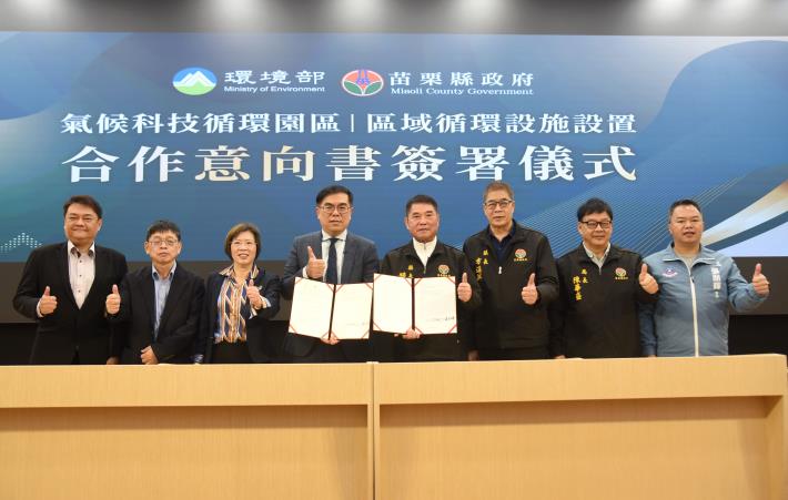 行政院核定將苗栗納入「桃竹苗大矽谷推動方案」,苗栗縣政府為因應產業發展及人口增加,衍生的產業及民生廢棄物等課題,並順應全球淨零轉型與循環經濟浪潮,16日與環境部簽署「區域循環設施設置合作意向書」(MOU),成為全國第一個攜手中央推動循環設施設置的縣市,期打造「減碳、減廢、創值」的示範場域,加速推動循環經濟產業、提升科技發展,創造多贏局面。
