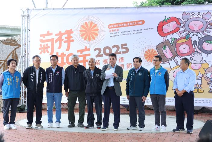 縣長感謝銅鑼公所、代表會、農會的用心,團結一致把地方打造得更好,有效推動農產銷售,也要感謝中央各部會單位,有需要縣府協助的地方定會全力以赴,希望透過活動吸引各地遊客來銅鑼遊玩,帶回當地優質農產與親朋好友分享,讓杭菊、芋頭農友這一年來的辛苦有很大的收穫。