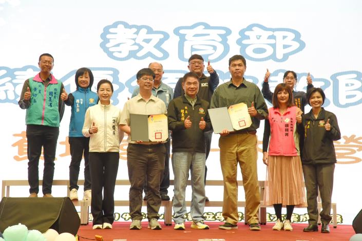 啟動儀式後,縣長鍾東錦頒獎表揚獲教育部數位學習績優領導教師林在營,以及優良教案、績優學校、卓越學校、典範學校、績優人員及親子互動獎項,肯定這些學校和個人在推動數位教學領域的努力與成果,也透過數位科技激發創意、培養解決問題的能力,展現科技融入教學的豐富樣貌與無限可能。