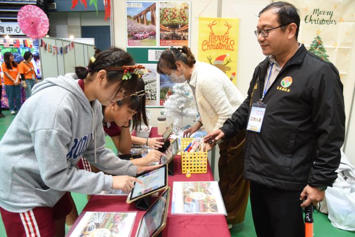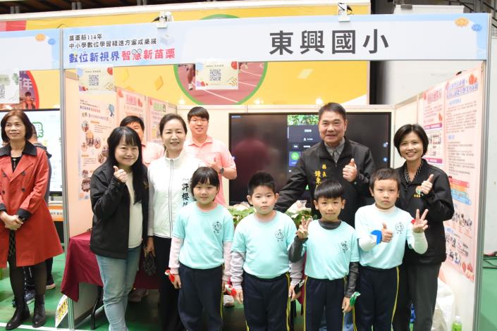 會場匯集了35個攤位,展示成果也提供闖關增添樂趣,攤位涵蓋AI 智慧學習應用、多元文化與跨領域探究、遊戲式互動教學及沉浸式AR/VR體驗課程等多元主題,吸引不少學生和家長體驗。縣長鍾東錦也與東興國小師生互動,體驗運用高科技儀器檢測草莓有無病蟲害或蟲害種類,正是AI科技運用到農業最佳的案例,也契合縣府積極輔導莓農篩選健康種苗及呵護草莓成長的政策。