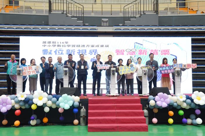 苗栗縣政府教育處13日在巨蛋體育館舉辦「數位新視界、智慧新苗栗」數位學習精進方案成果展,展示國民中小學一年來在數位學習上的創新成果與實踐成效。縣長鍾東錦期勉學生努力學習數位新知與技能的同時,也強調電力與水力就是AI發展的實力,更是國力的象徵,期許教育團隊攜手地方各界持續深耕數位教育領域,進而在苗栗形成一個眾所矚目的AI聚落。