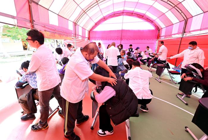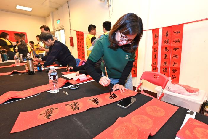 今天活動會場也安排聖福社區和頂埔社區帶來舞蹈表演、後龍鎮同光國小的口琴演奏、夏葳藝術空間舞蹈表演、李長青先生薩克斯風演奏及深獲大小朋友喜愛的張豈岑先生「魔術氣球秀」。另外,會場旁也有推拿按摩、中興商工學生義剪及名師揮毫贈送春聯活動。