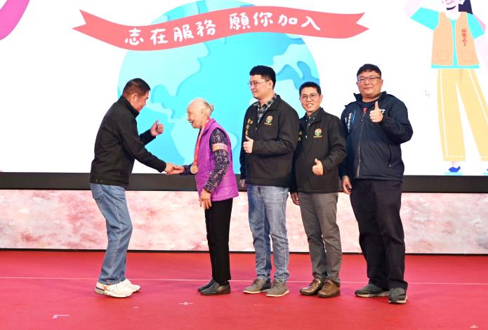 其中,今年74歲的銅鑼鄉竹森社區發展協會劉秀香,從100年開始擔任志工,至今已14年,服務時數高達17,009小時,為全縣最高服務時數志工;另外,高齡91歲的公館鄉衛生所志工徐秋枝,是全縣最年長志工,服務時數也有4,076小時,兩人上台受獎時,也獲得全場最熱烈的掌聲。