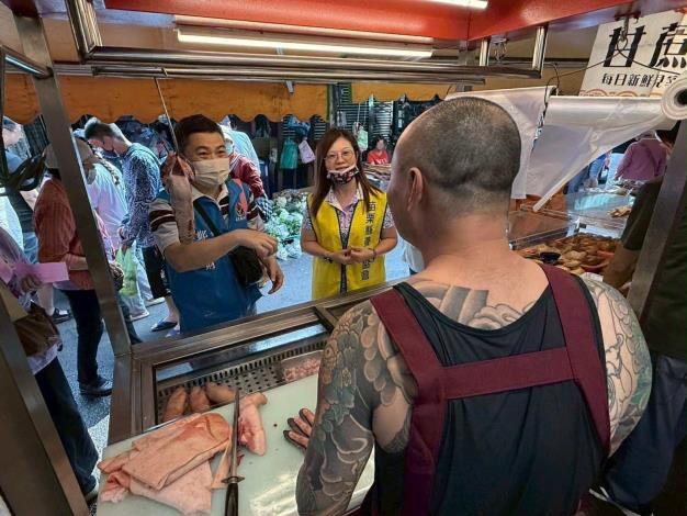 禁令解除後,首次前往傳統市場了解豬肉販售情形,經訪視後,許多豬肉攤商表示:「豬肉大約9點多就賣完了!希望中央可以多開放一點活豬交易」顯示傳統豬肉市場首日交易買氣強強滾,也顯示出國人對於國產豬肉的品質,仍是具有信心的。本府人員與曾惠玲總幹事除了巡視豬肉市場交易情形之外,也藉機向民眾宣導在市場選購豬肉時,認明「屠宰衛生檢查合格標誌」與合法來源標示,即可安心購買、放心料理。農業處強調:「市場上合格的國產豬肉,需依規定經獸醫師檢查、屠宰衛生檢驗合格、品質與安全嚴格把關才能上市,請大家放心選購,一起守護苗栗在地養豬產業。」