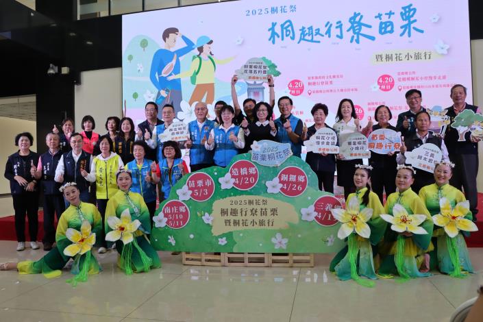 副縣長邱俐俐表示,苗栗擁有「桐花故鄉」的美譽,每年4月桐花盛開,如同漫天飛雪般美不勝收,吸引無數遊客流連忘返。今年精心策劃一系列活動,結合桐花美景、客家文化、在地農特產品展售及音樂表演,讓民眾在自然美景中深入體驗苗栗豐富的文化魅力。