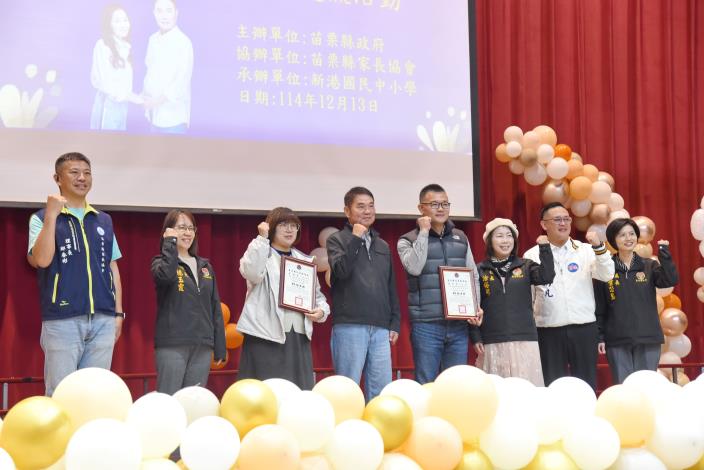 苗栗縣政府13日在後龍新港國中小辦理「114 年度家長會長授證暨各校家長會長聯誼交流」,縣長鍾東錦到場授證感謝家長會為教育事業出錢出力,並率同教育處團隊與校長、家長會長多方交流。會中,鍾東錦分享本身經驗,呼籲家長多了解孩子的思維,不要給他們太大的壓力;另外,縣立苑裡高中甫獲排球世界盃銀牌,縣府有意尋求企業合作,培養一支職業排球隊,再創輝煌戰績。